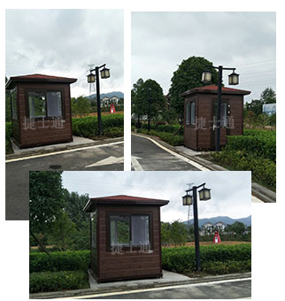 崗?fù)ね庥^古樸、穩(wěn)重,外墻板為金屬雕花板板材,板材仿實(shí)木造型,崗?fù)な覂?nèi)配置pvc吊頂,復(fù)合木地板、照明、插座、漏電保護(hù)器、工作臺、空調(diào)等,可滿足一般工作需求。