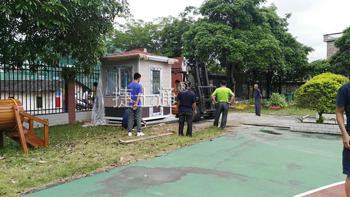 廣東肇慶幼兒園定制1個2×2米的金屬雕花板門衛(wèi)亭保安室