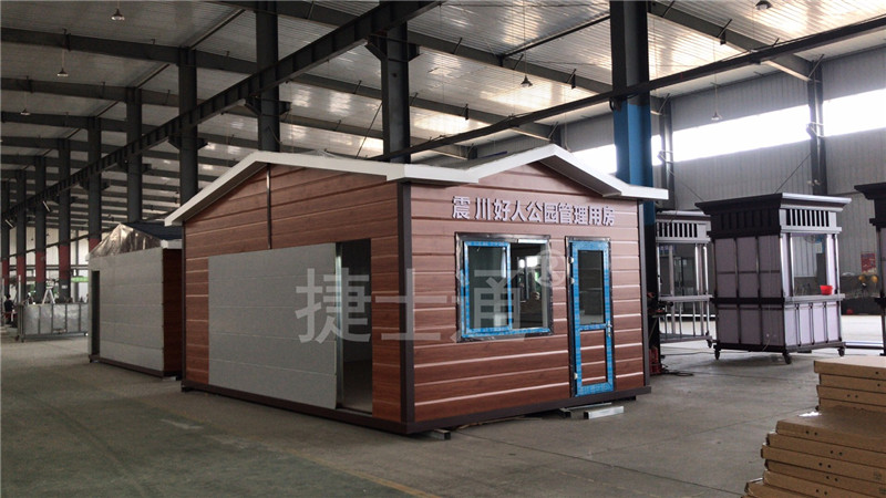 為加強公園管理,為環(huán)衛(wèi)工作人員提供休息室及管理用房,公園決定在 我司采購,房屋整體外觀樣式采用尖頂, 外墻板采用仿木紋雕花板材質,這是公園景區(qū)采用較多的,適合綠植較多的尺寸:3*7米,室內(nèi)空間使用面積大,可多功能使用,休息區(qū)、管理區(qū)、置物區(qū)等