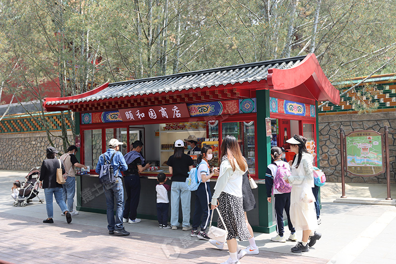 捷士通作為移動房屋廠家,為北京頤和園生產(chǎn)了一款與景色相互照應的售賣崗亭,展現(xiàn)出獨特的魅力。這款售賣崗亭經(jīng)過捷士通精心設計,專門為配合頤和園的建筑風格而制作,采用仿古的外觀,與園內(nèi)的景色相得益彰。