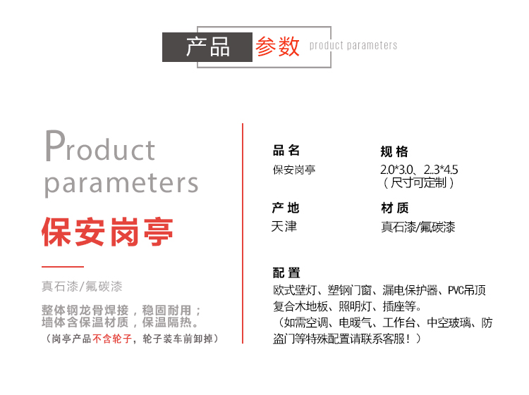 | 類型 | 保安崗?fù)?/span> | 顏色 | 可定做 | 運(yùn)輸方式 | 公路運(yùn)輸 | ||