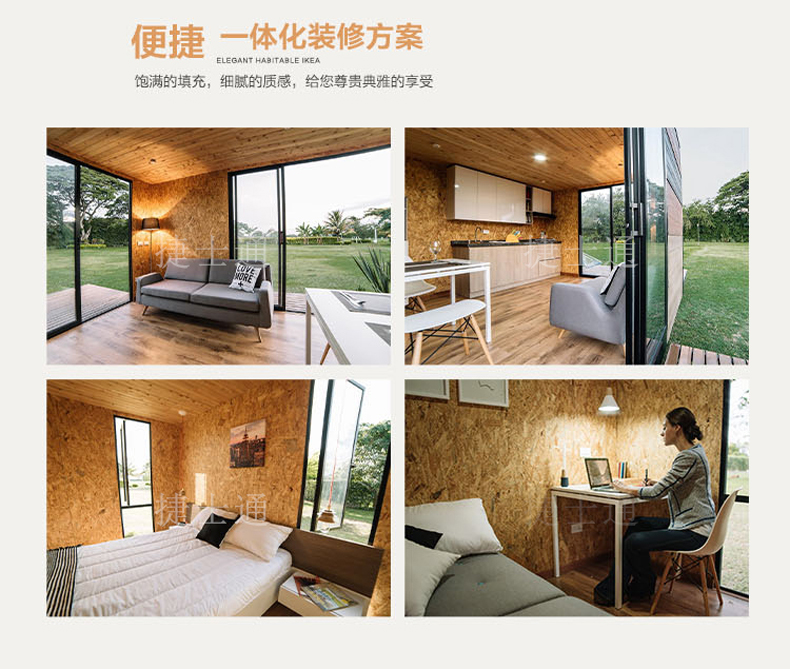 標(biāo)準(zhǔn)配置 :外墻:優(yōu)質(zhì)金屬雕花板/氟碳漆板/纖維水泥板可選。纖維水泥板有好的防水性能,在衛(wèi)生間,浴室等高濕度的地方,仍能保持性能的穩(wěn)定,不會膨脹或變形。 內(nèi)墻:復(fù)合木地板/纖維板水泥板......龍骨:優(yōu)質(zhì)鍍鋅方鋼龍骨焊接。室內(nèi)吊頂:優(yōu)質(zhì)PVC吊頂/納米纖維板可選。底座:鍍鋅方鋼焊接加黑竹木板模板。室內(nèi)地板:優(yōu)勢防滑鋁板/防滑瓷磚可選。門窗:斷橋鋁門窗、防盜門 。其他:照明、配電系統(tǒng)......可根據(jù)客戶需求進(jìn)行特殊定制。聯(lián)系電話:15822882616,公司網(wǎng)址:www.sn16888.com。