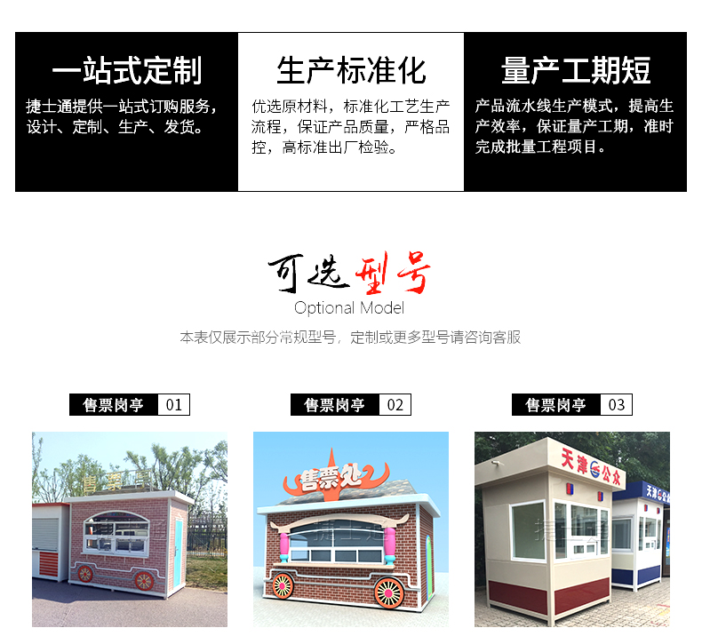 | 類型 | 售票亭 | 顏色 | 可定做 | 運輸方式 | 公路運輸 | ||