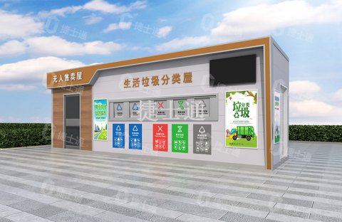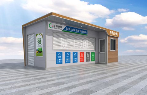 此款為房屋型垃圾分類房,是以房屋為承載體,內部配以垃圾箱或者智能垃圾回收箱,形成步入式垃圾投放的形式,其產品優(yōu)勢為外觀靚麗,可融入周邊建筑群體,并可以為垃圾分類引導員提供休息執(zhí)勤的空間,房屋內部設備配套齊全,可有效解決氣味污染、環(huán)境視覺污染等問題;但是造價相對較高,基本以長期固定的形式呈現(xiàn),為未來發(fā)展趨勢