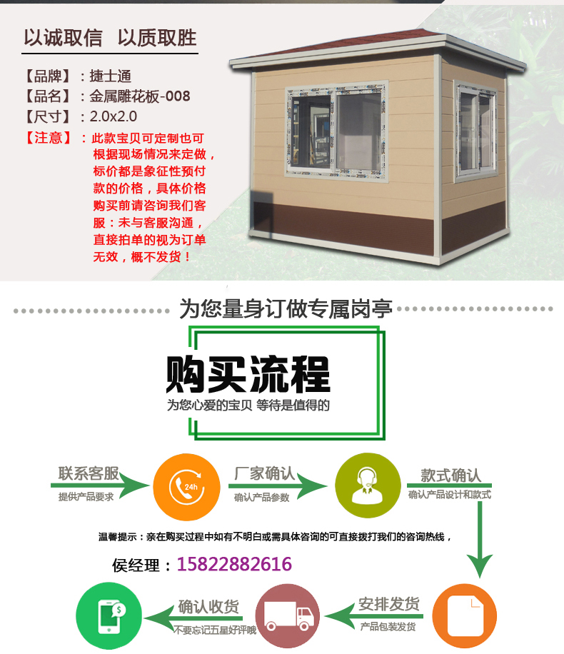崗亭廠家直銷少了中間商的環(huán)節(jié),對客戶也是有利的;在能夠保證質(zhì)量的情況下,還能得到相對實惠的價格。