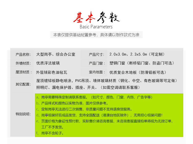 戶外移動(dòng)崗?fù)?/a>是時(shí)尚潮流的建筑體系,可以隨時(shí)隨地配送到各個(gè)地區(qū),內(nèi)部配電系統(tǒng)可供室內(nèi)用電,接通電路,提高工作效率,便捷使用。根據(jù)亭內(nèi)使用人數(shù)的不同,定制不同規(guī)格、樣式的戶外辦公室,咨詢電話:15822882616,公司網(wǎng)址:www.sn16888.com。