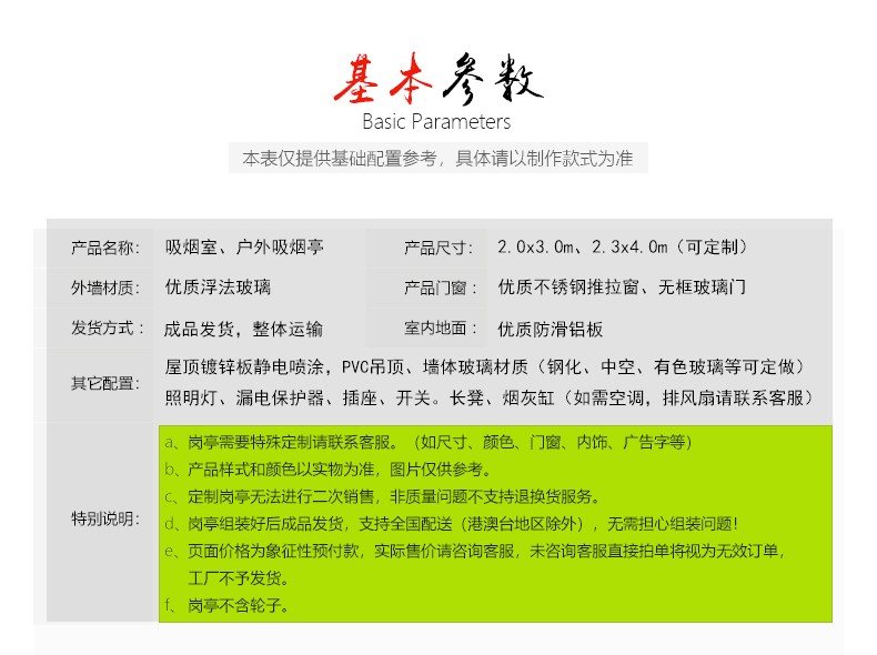 此款吸煙亭重量輕,強度高,抗沖擊性能好,降低了建筑物本身的重量。在板材之間的優(yōu)良結構和緊湊的凹凸式安裝和槽式安裝,避免了雨、雪凍融循環(huán)所造成的結構破壞,消除了進水和發(fā)霉的現(xiàn)象。這種類型的展臺適合于住宅小區(qū)、工廠、大型商廈和室外公共設施,具有高外墻的建筑綜合體。有一百多種浮雕圖案和色彩設計選項,突出建筑裝飾效果的等級和等級。聯(lián)系電話:158 2288 2616 公司網(wǎng)址:www.sn16888.com。