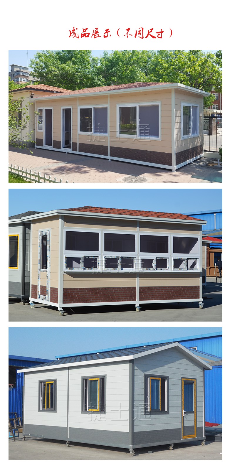 天津捷士通崗?fù)S家定制各類移動(dòng)房屋:治安崗?fù)?、警?wù)室、移動(dòng)辦公室、垃圾分類房、售貨亭、移動(dòng)廁所等,房屋外墻常用優(yōu)質(zhì)金屬雕花板材料,材質(zhì)顏色眾多,如粉色墻體配底部紅磚塊圖案,米黃色墻體配底部紅條紋圖案,白色墻體配灰色磚塊,白色墻體配紅磚塊,等等 很多種類供您挑選。也可按要求配置客戶需要的顏色,金屬雕花板主體結(jié)構(gòu)為:
