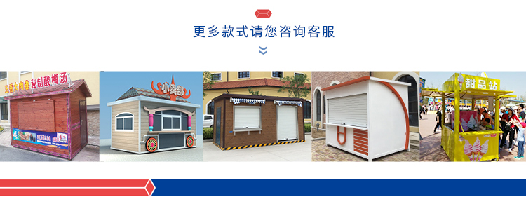 售貨亭常規(guī)尺寸2*3米,其他尺寸可根據(jù)實(shí)際需求定制,可放置在景區(qū)、夜市街、商業(yè)街等處,廠家可批量定制生產(chǎn),生產(chǎn)周期快